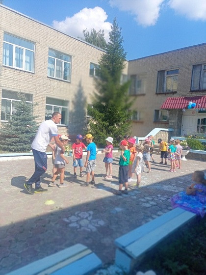 Тренер – преподаватель спортивной школы Дмитрий Лукьяненко 11 июля провел подвижные игры и тренировку по футболу с детьми старшего дошкольного возраста в детском саду «Звездочка».