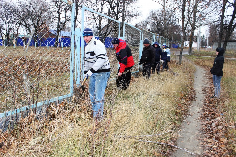 Была прорублена молодая поросль деревьев вокруг ограждений, собран и утилизирован мусор по периметру плоскостного сооружения стадиона «САЛЮТ».